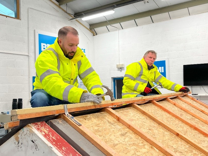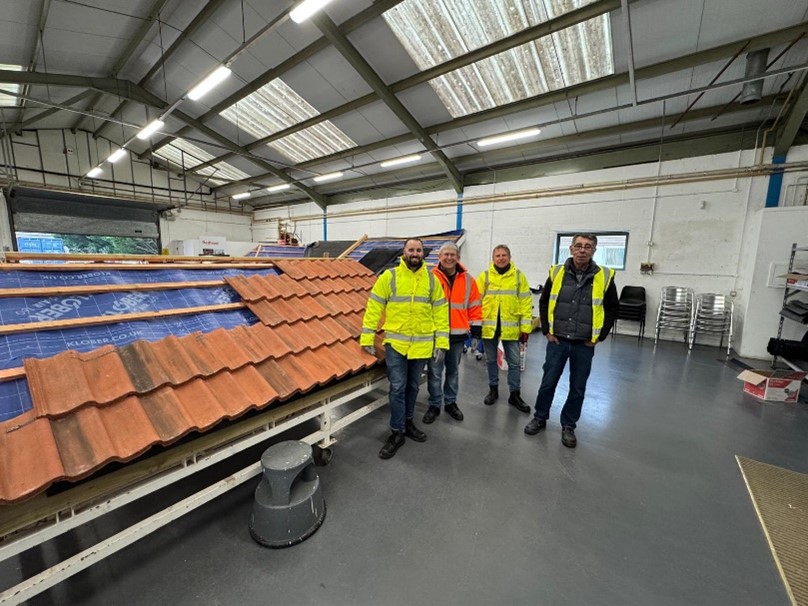Our surveyors spend much of their time identifying problems with roofs amongst other things so we thought that some hands-on experience would be worthwhile, and Julian, Paul Richard and Nathan enrolled on a one-day training course at BMI Redlands training centre in Cirencester to gain some real experience of building a roof.